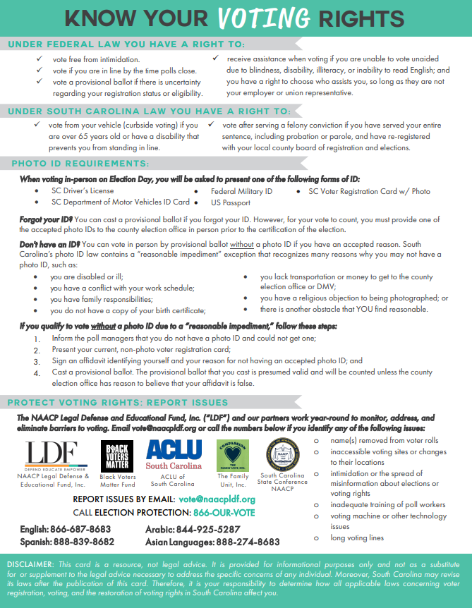 South Carolina Palm Card Page 2